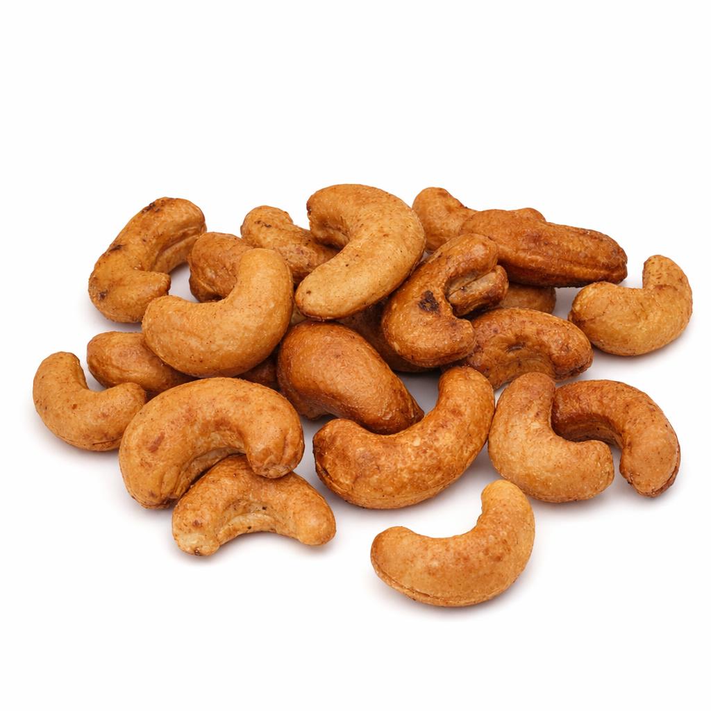 El arte de tostar frutos secos se considera parte del patrimonio del Líbano, donde durante siglos se han perfeccionado las técnicas artesanales. Esta técnica, casi una ciencia, se basa en la temperatura, el tiempo, el movimiento y, por supuesto, las especias, que tras siglos combinándolas han permitido dar sabores y mezclas únicas. Los anacardos se tuestan cuidadosamente y se sazonan con curry para un sabor especiado y exótico.