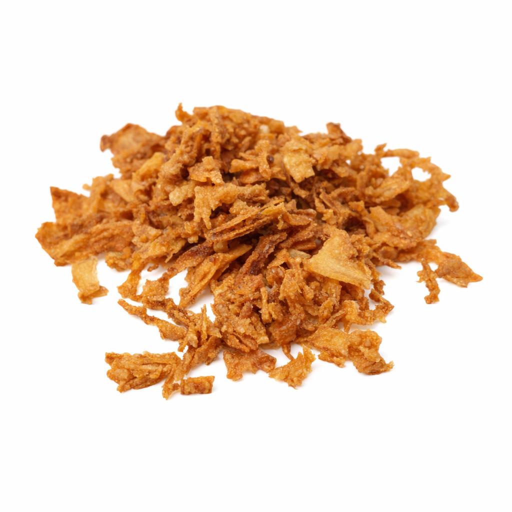 Incorpora Cebolla Frita Crujiente en un guiso de verduras o legumbres al final de la cocción. Su textura crujiente y su sabor intenso transformarán tu guiso en una experiencia gourmet.