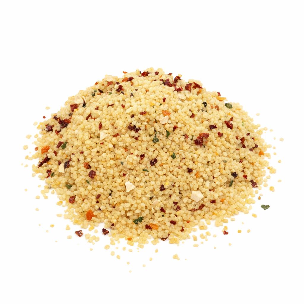 El Cous cous Marroquí es un alimento versátil y nutritivo, ideal para preparar platos exquisitos en poco tiempo. Su textura ligera y esponjosa lo convierte en la base perfecta para acompañar guisos, ensaladas o como plato principal. Este producto deshidratado se rehidrata fácilmente, absorbiendo los sabores de los ingredientes con los que se cocina, lo que lo hace una opción deliciosa y práctica para cualquier ocasión.