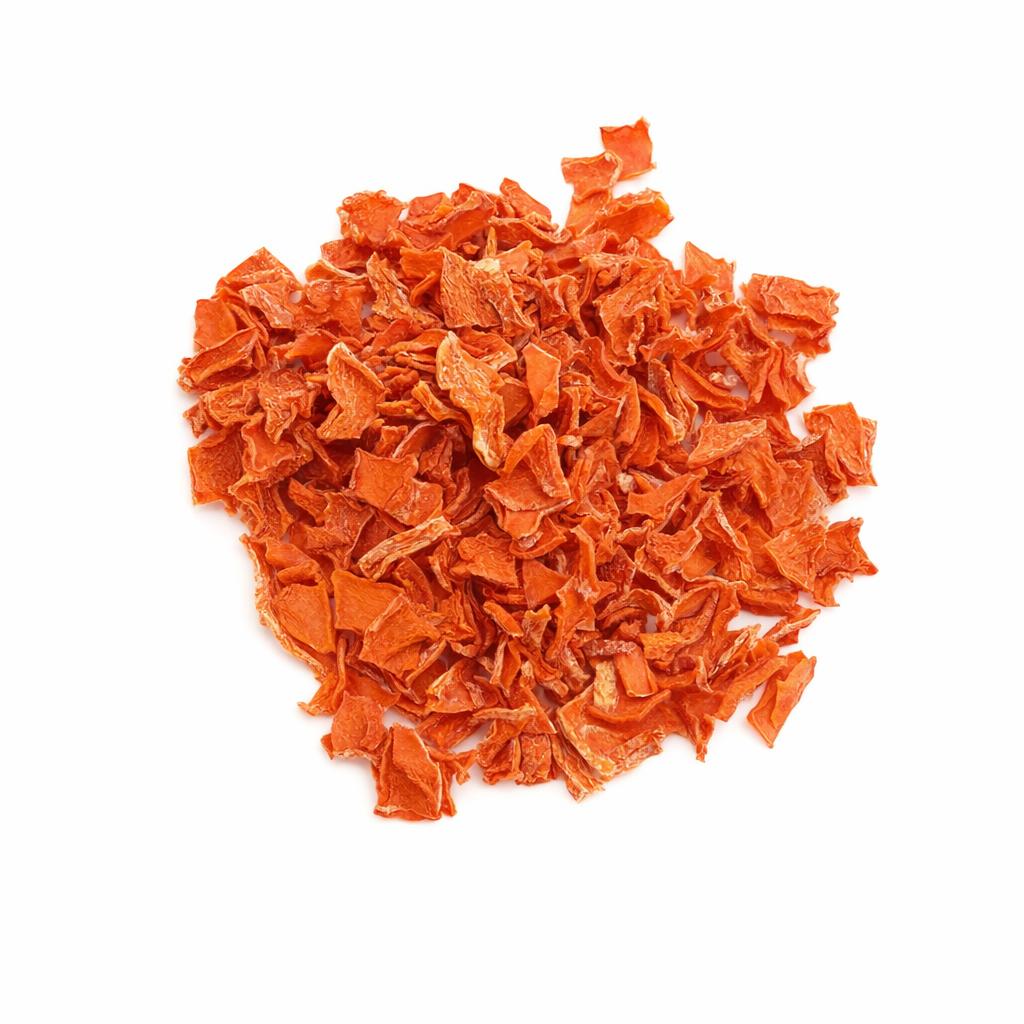 Mejora tus guisos añadiendo zanahoria deshidratada. Su sabor dulce y terroso realzará el plato, aportando un contraste crujiente y vibrante.